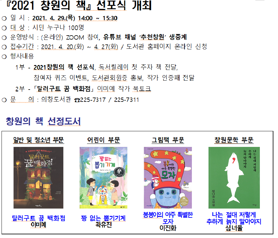 2021. 창원의 책 독후감 전국 공모전 참여 안내